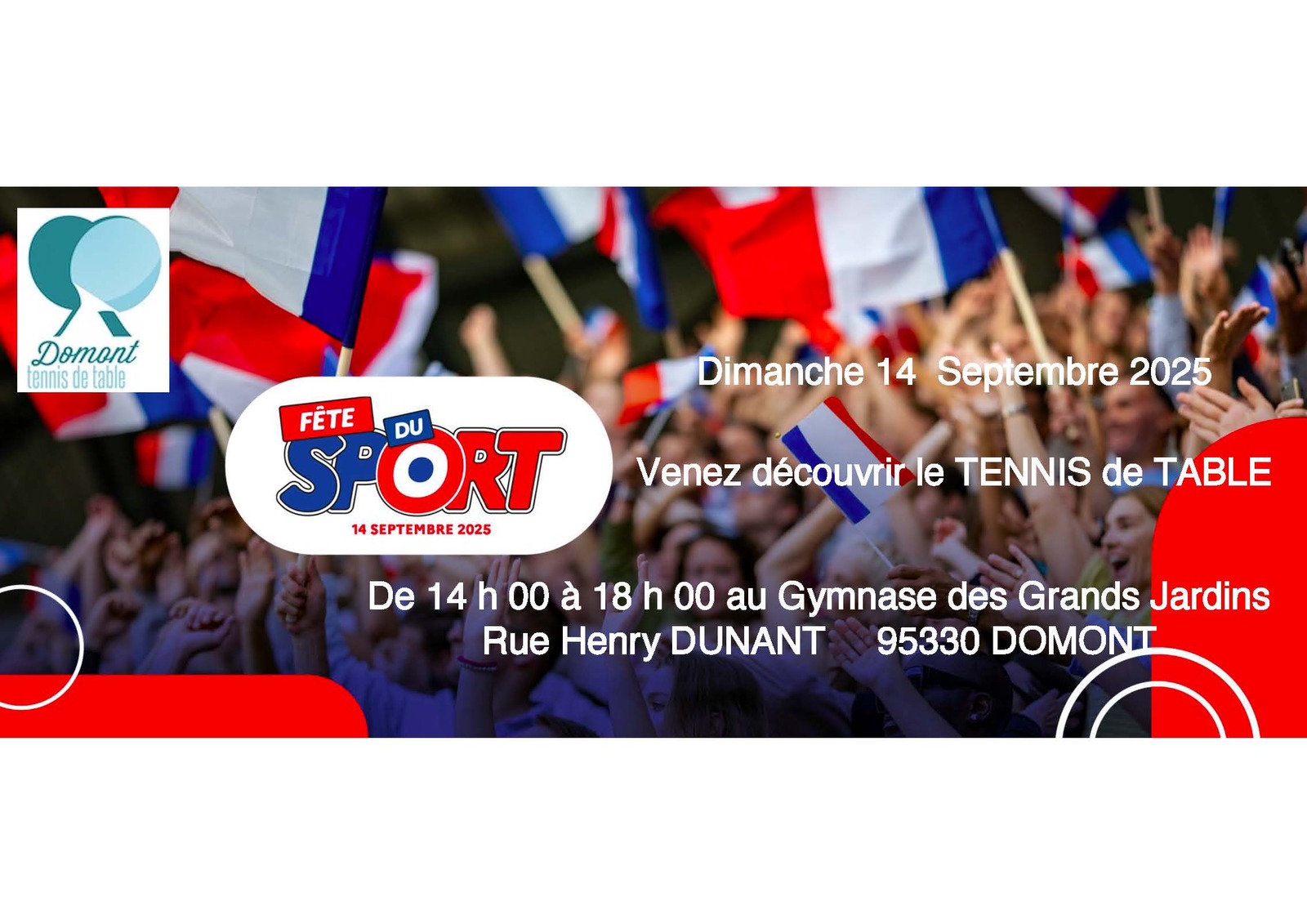 Dimanche 14 Septembre de 14 h 00 à 18 h 00, dans le cadre de la Fête du SPORT venez découvrir le Tennis de Table.